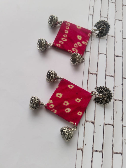 View full detailsPink Bandhani Fabric Jhumka Earrings For Women