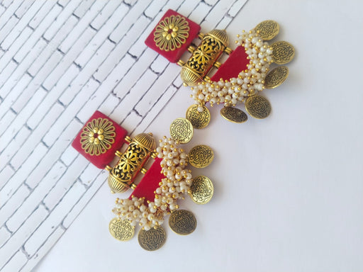 View full detailsHot Red Heavy Coin Fabric Jhumka For Women