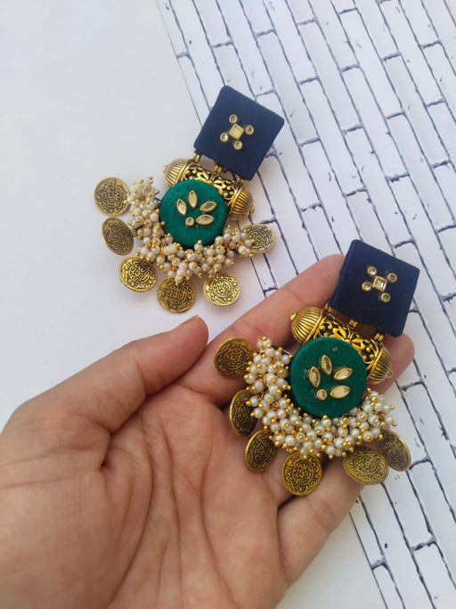 View full detailsGreen And Blue Golden Coins Heavy Kundan Jhumka