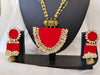 Get ready to make a statement with our bold and beautiful Red complete kundan and beads necklace earrings set. This set is the perfect combination of traditional kundan and trendy beads, giving you a unique and eye-catching look. Perfect for any occasion, this set will add a touch of elegance and playfulness to your outfit. Adorn yourself with our mesmerizing Red complete beaded set . Each piece is meticulously crafted to add glamour and sophistication to any outfit.